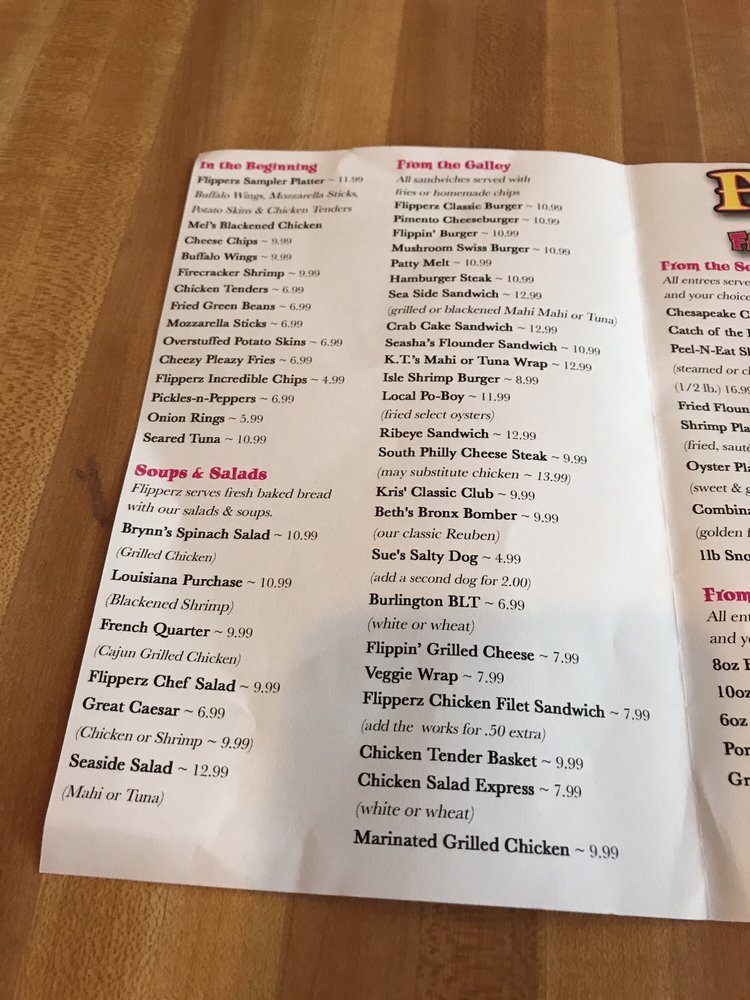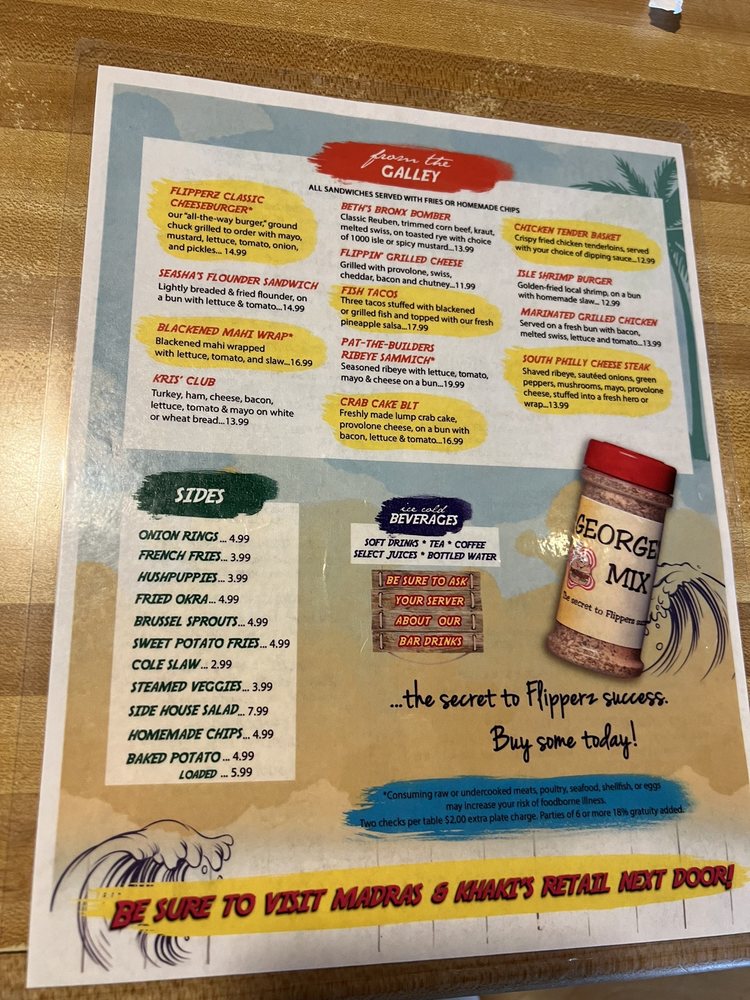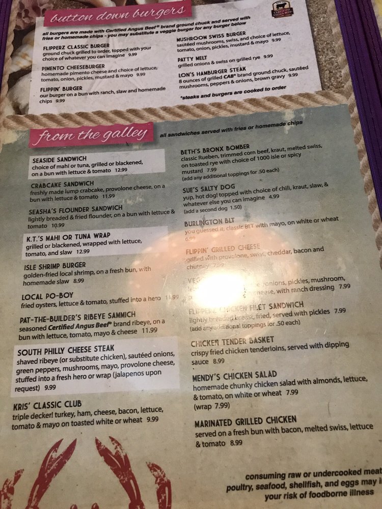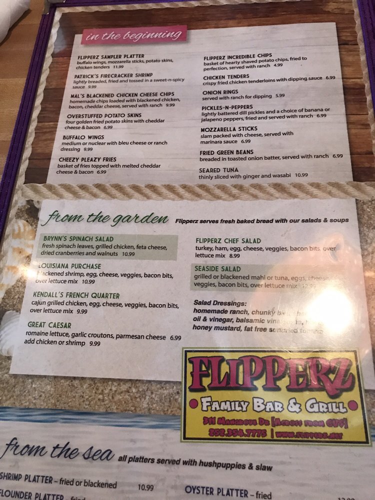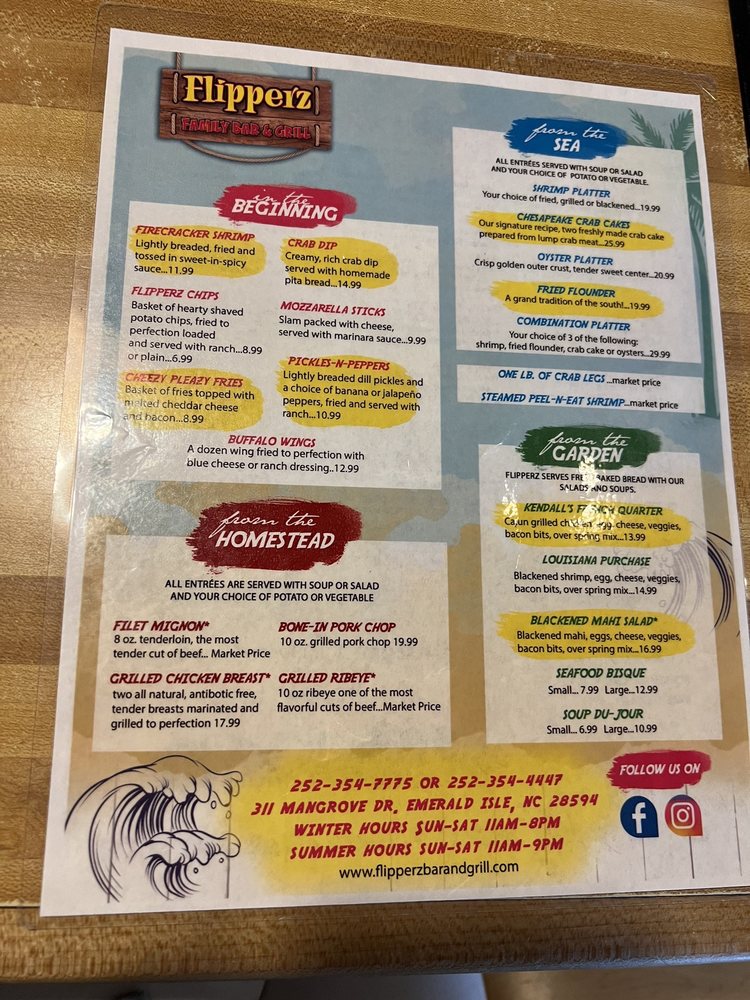 Flipperz Family Bar and Grill, located in Emerald Isle, NC, offers a diverse menu of American, sandwich, and seafood dishes. This family-friendly restaurant provides various amenities such as takeout, delivery, outdoor seating, and a full bar. Customers rave about the homemade desserts and the attentive wait staff. The menu caters to different tastes with daily specials and a selection of vegetarian options. Highlights include the crab dip, crab cakes, flounder & shrimp combo meal, and the delicious PB&Js for the kids. The cozy atmosphere and friendly service make Flipperz a great spot for lunch or dinner. With positive reviews praising the food quality and service, this restaurant seems like a must-visit destination for anyone craving a satisfying meal in a casual setting.